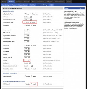 - TX Power: Now this is one of the popular topic in the DD-WRT forum. This is related to transmission power and if you set this value too high, then the router may get burnt or won’t last its intended life span. The recommended max value is 70 which is the default. But please note that many users have said that increasing TX power does not boost the wireless signal that much. In fact, I did not see much difference either. So I decided to use the default.